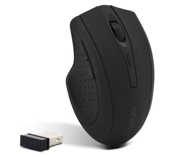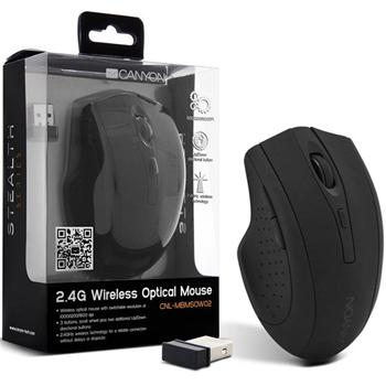 Wireless Optical Mouse with sleek, understated matte black finishThis is a no-nonsense, straightforward optical wireless mouse. It will please those looking for comfort, precision and functionality. The sleek, understated matte black finish gives a cool, sturdy look to mouse, and it also blends in well with the rest of your gear. Its soft, rubber coating is durable and adds extra protection against knocks and bumps. It is comfortable to handle, thanks to its ergonomic design and side grips. The mouse has 3 buttons, a scroll wheel and two responsive up/down directional buttons. It features a switchable resolution up to 1600 dpi, as well as 2.4GHz wireless technology for a reliable connection without delays or dropouts. Up to 6 months of battery life (batteries included). This model is also available in a wired version (CNL-MBMSO02). This product is part of Canyon’s Stealth Series.