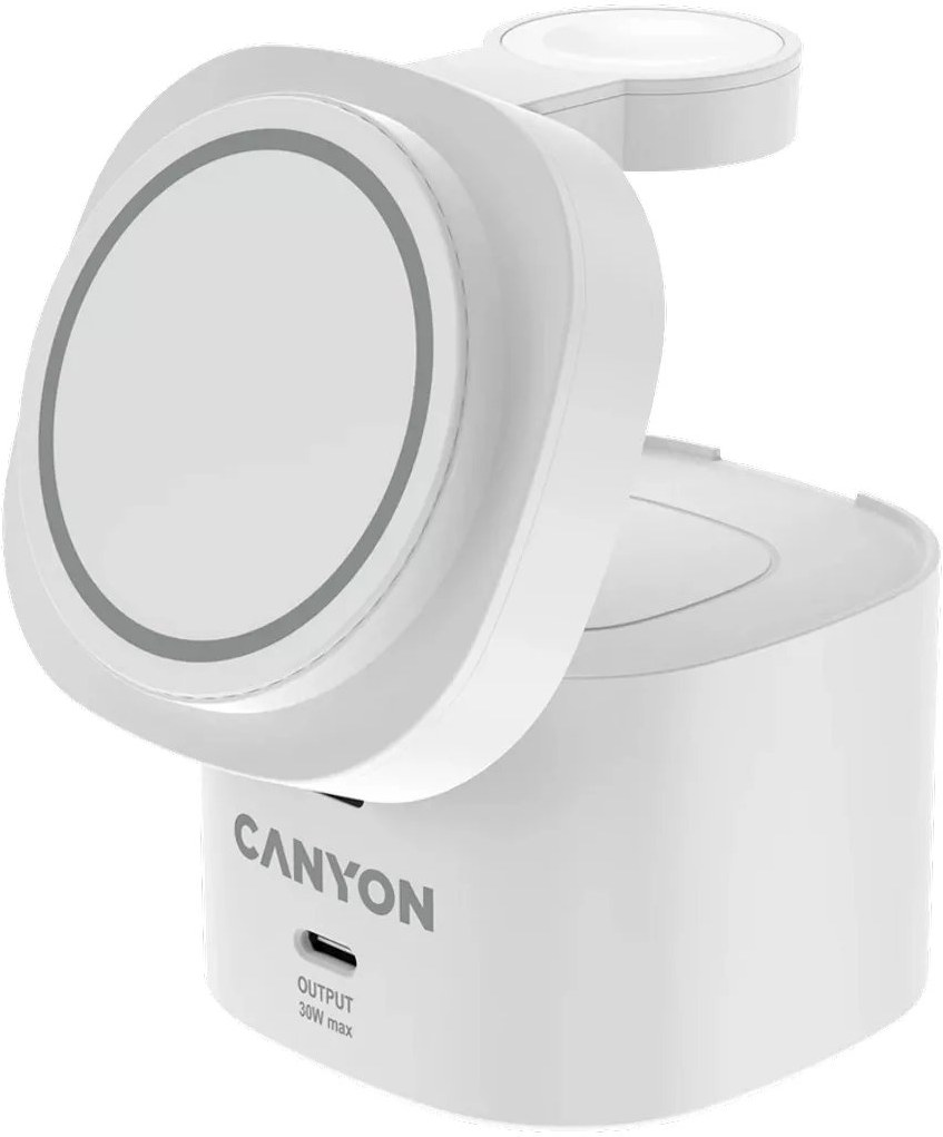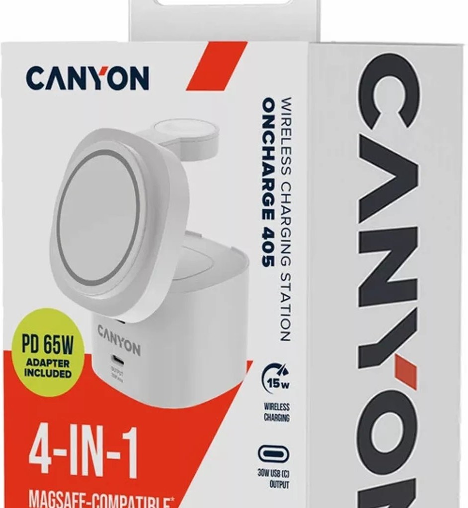 Canyon WS-405, 4v1, bezdrôtová Qi2 nabíjacia stanica, 65W nabíjačka, biela