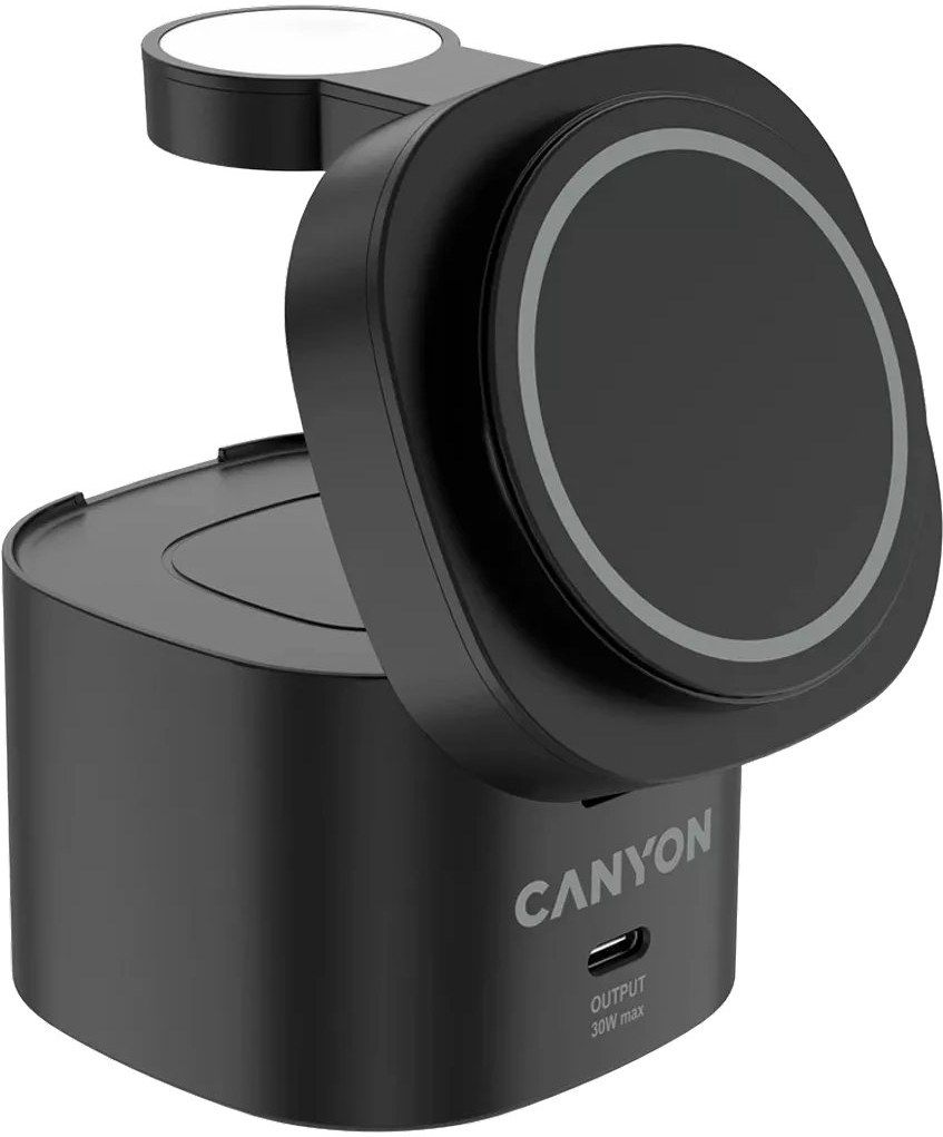 Canyon WS-405, 4v1, bezdrôtová Qi2 nabíjacia stanica, bez nabíjačky, čierna