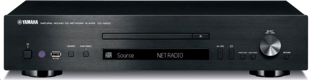 YAMAHA CD-N500 Black kompaktný Hi-Fi CD prehrávac s možnostou využitia sietového prehrávania. Podporuje prehrávanie CD-R/CD-RW diskov a MP3, WMA audio súborov. Oddelený zdroj zabezpecuje zníženie šumu a zvýšenie zvukovej kvality. Elegantný dizajn s hliníkovým predným panelom.