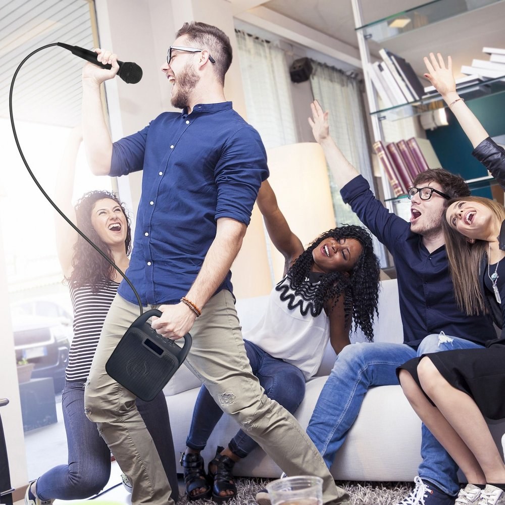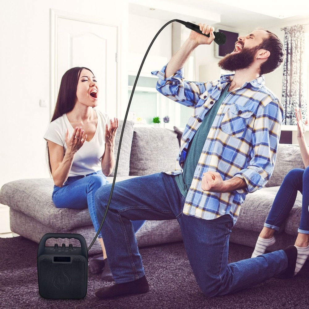 S CELLY setom karaoke mikrofónu a bezdrôtového reproduktora sa stanú hviezdou každej párty. Stačí zahrnúť reproduktor skrz Bluetooth technológiu alebo AUX kábel k vášmu tlačidlu, kedykoľvek alebo inému zdroju hudby, prípadne môžete zvoliť obľúbenú hudbu nahrať pomocou TF karty. Svoj výkon si môžete dokonca nahrať a znova vypočuť, alebo ho oživiť špeciálnym echom efektom. O ovládaní systému aj playlist sa postarajú o tlačidlá priamo na bezdrôtovom reproduktore. Vstavaná batéria vydrží až 5 hodín prehrávania.výdrž batérie: 5 hodínkapacita batéria 2400 mAhabíjanie pomocou micro USB káblaTechnické parametre