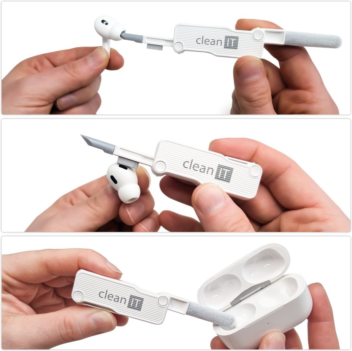 Všestranná čistiaca sada na rýchle a jednoduché čistenie bezdrôtových slúchadiel. Vďaka svojim malým rozmerom sa zmestí do každého vrecka a bude tiež vždy po ruke. Sada sa skladá z troch častí. Silikónový hrot pera je vhodný na čistenie odolných nečistôt na ťažko prístupných miestach, zatiaľ čo pomocou hustej kefky vyčistíte menšie reproduktory od prachu. Treťou časťou je mäkká huba, ktorá je ideálna na čistenie vnútra puzdra slúchadiel.Technické parametre