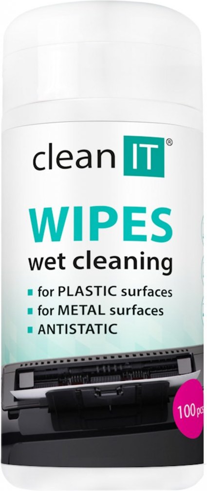 Vlhčené univezálne obrúsky Clean IT dokonale čistia a starajú sa o kancelársku techniku s plastovým povrchom. Anti-statická úprava obrúskov pomôže udržať ošetrené povrchy dlhšie čisté.Obsah: 100 ks