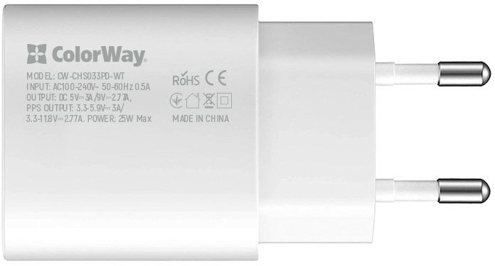 Nabíjačka ColorWay Power Delivery Port PPS USB Type-C (25 W) podporuje najnovšiu technológiu Super Fast Charging PD 3.0 25 W PPS, Apple fast charge, Huawei FCP, Quick Charge 2.0 a 3.0, Samsung AFC s výstupným napájaním na 25W.Podpora rýchleho nabíjania