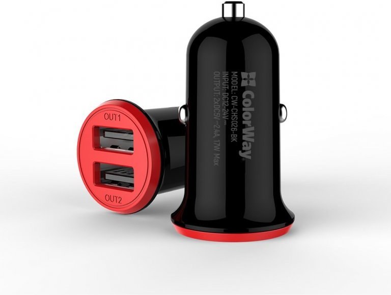 ColorWay CW-CHA026-BK17W, nabíjačka do auta, červeno-čierna