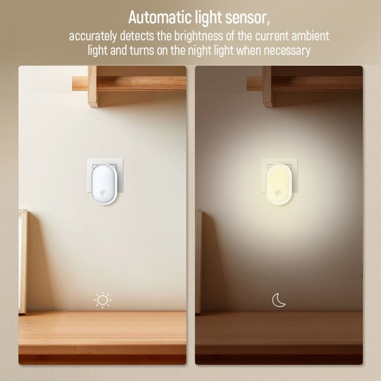 Návod: Zapojte nočné svetlo do zásuvky. Svetlo sa automaticky zapne pri nedostatočnom osvetlení.