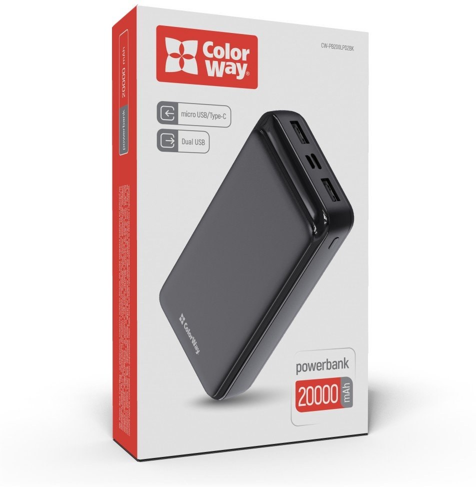 ColorWay powerbanka, 20 000 mAh Slim, čierna