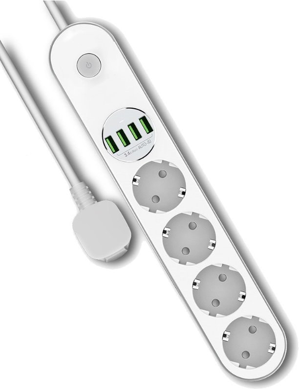 ColorWay predlžovací kábel 230V 4x zásuvka + 4x USB, 2.0m s vypínačom, biely