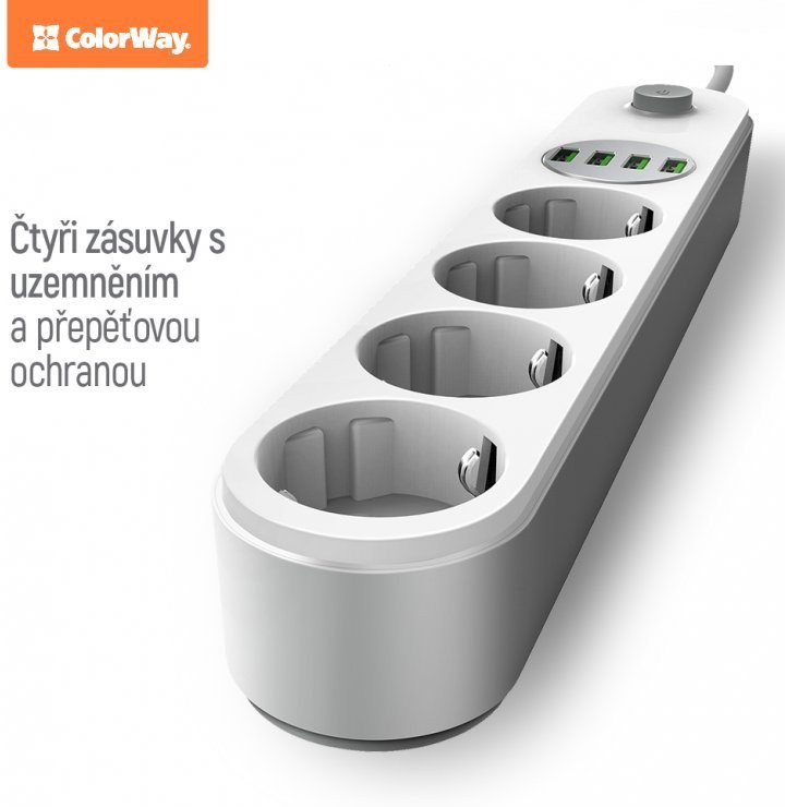 ColorWay predlžovací kábel 230V 4x zásuvka + 4x USB