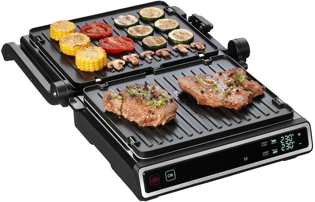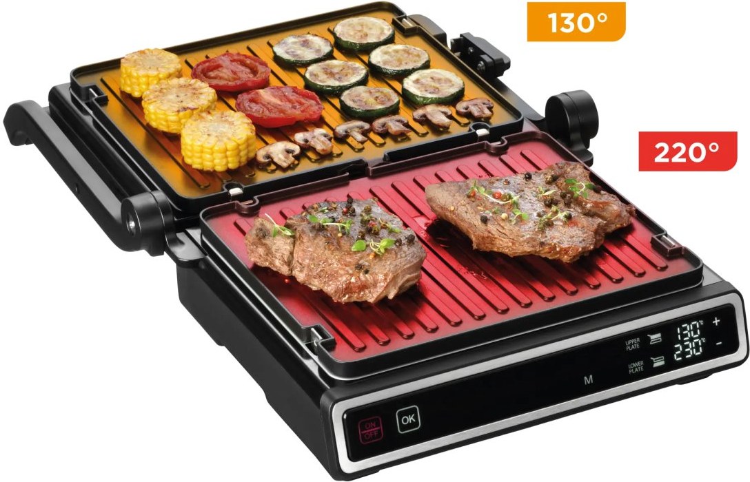 Nastavenie teploty pre každú dosku zvlášť umožňuje grilovanie rôznych druhov pokrmov naraz