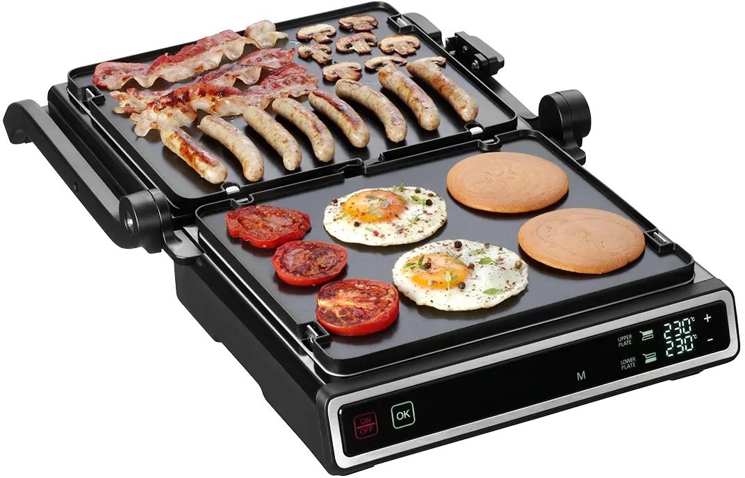 Šikovná funkcia SPLIT ZONE umožňuje nastavenie teploty pre každú dosku zvlášť alebo zahriatie len jednej dosky. Vďaka tomu zvládnete pripraviť rôzne druhy pokrmov a prispôsobiť si teplotu i čas dokončenia presne podľa potreby. Pohodlne prichystáte hlavný chod i prílohu naraz a hneď za tepla ich môžete rovno servírovať. Túto funkciu môžete využiť v manuálnom režime DIY, vďaka ktorému budete mať grilovanie plne vo svojich rukách. Gril si rozpálite presne tak, ako práve potrebujete a jednoducho ugrilujete čokoľvek, na čo si len spomeniete.