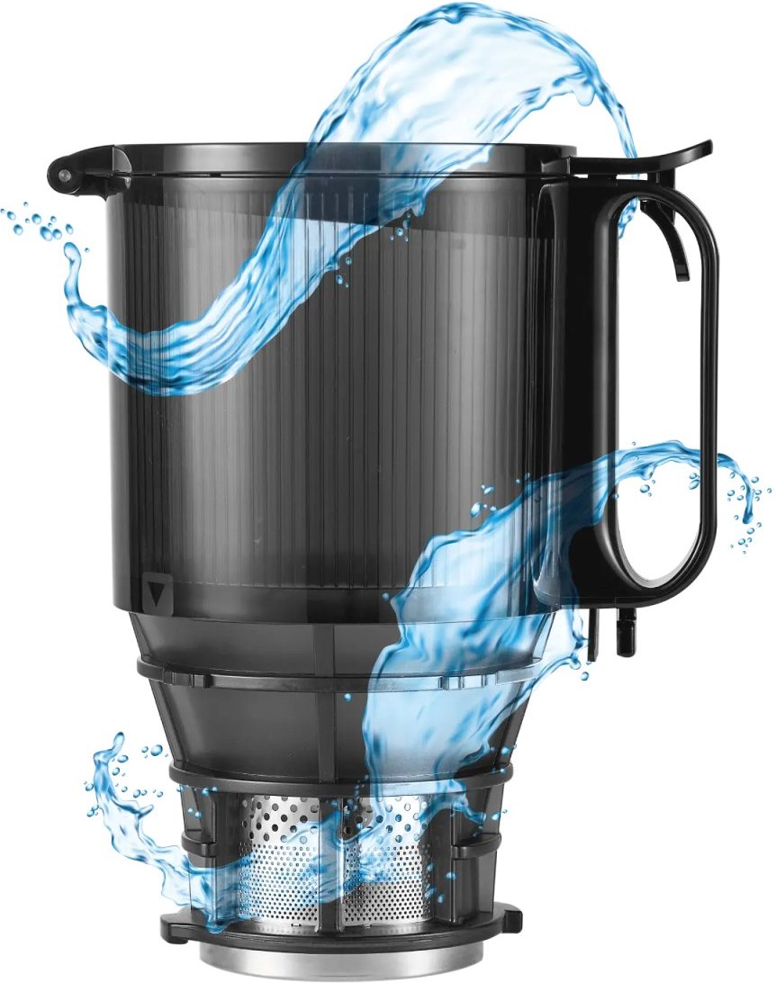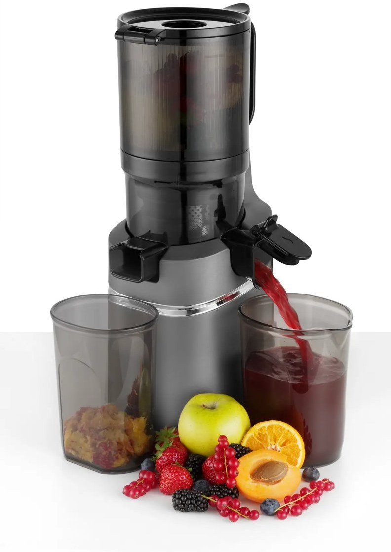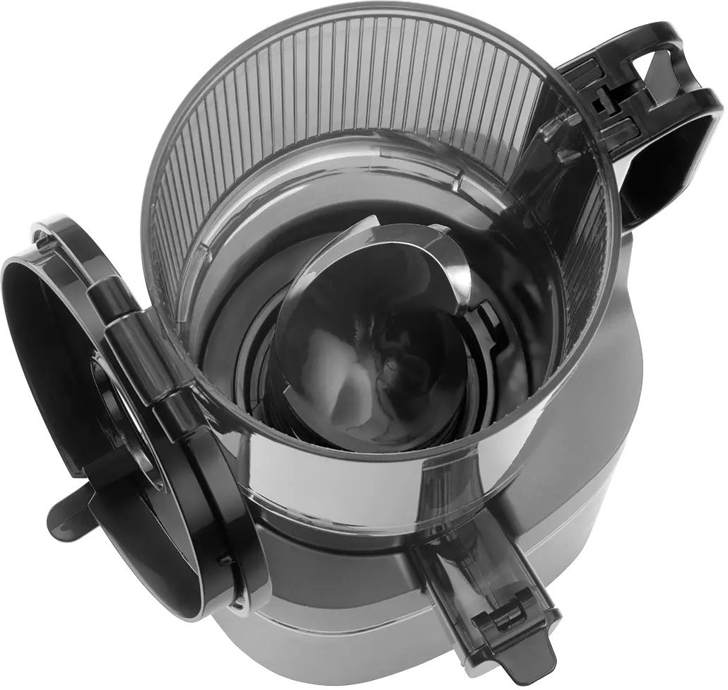 Súčasne pojme veľké množstvo surovín naraz, čo výrazne urýchľuje odšťavovanie, či už pripravujete šťavy pre seba alebo pre celú rodinu. Odšťavovač je vybavený bezpečnostnou poistkou, ktorá zabraňuje spusteniu zariadenia s otvoreným vekom, čím minimalizuje riziko úrazu. Tento mechanizmus je obzvlášť dôležitý pre domácnosti s deťmi. Prístroj nebude fungovať, kým nie je plne uzavretý a pripravený na bezpečnú prevádzku.