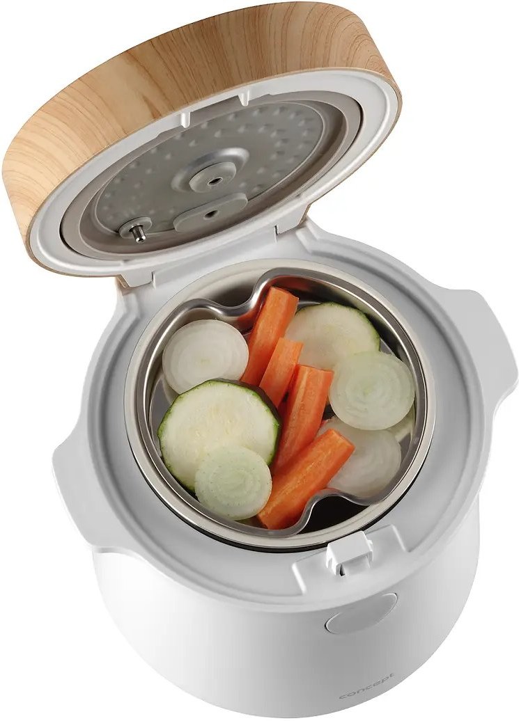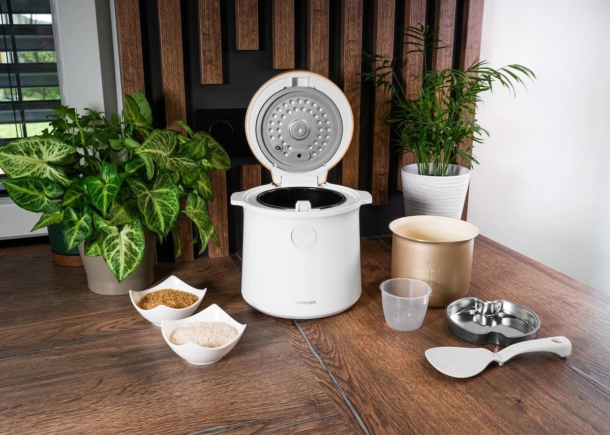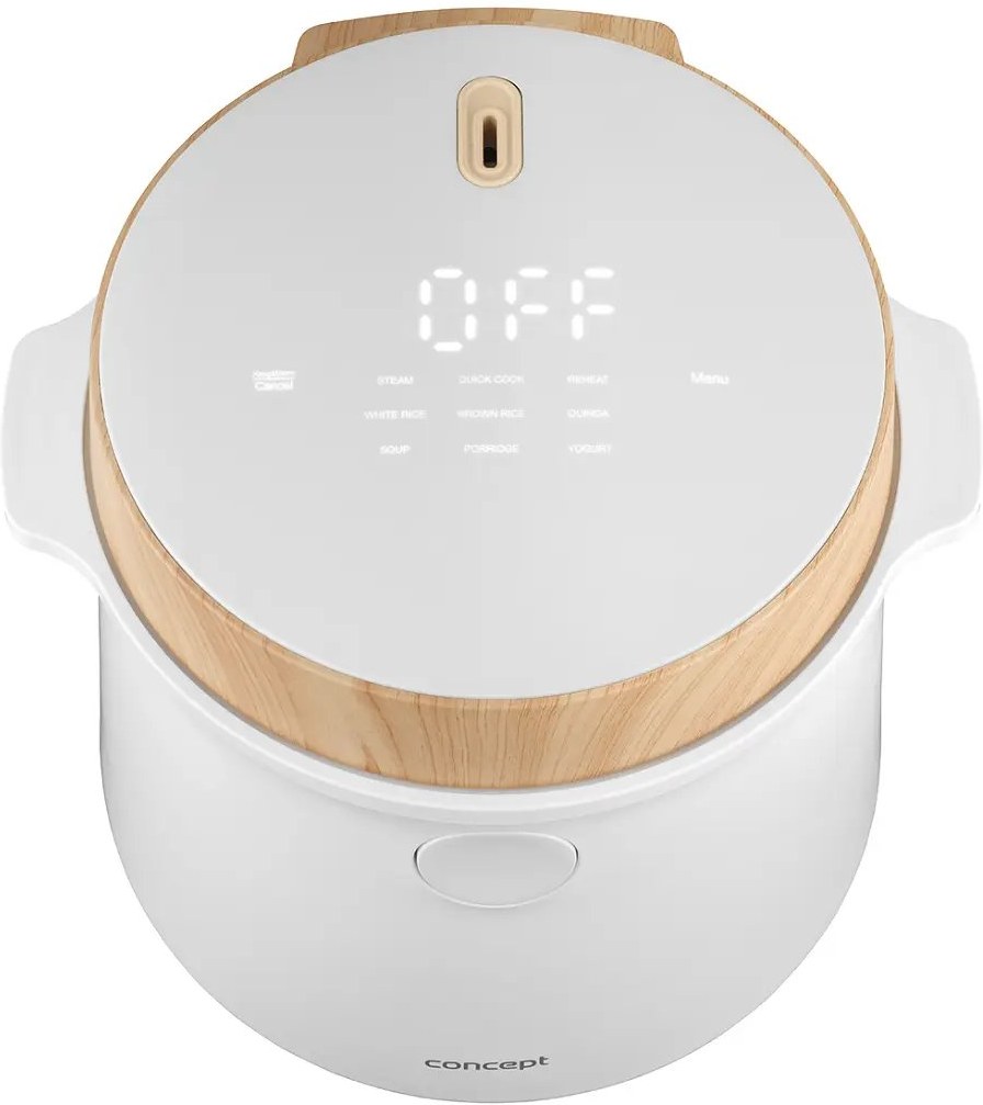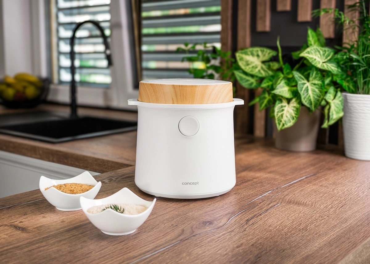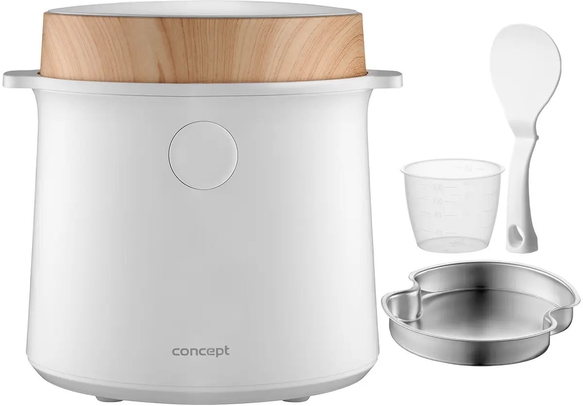 Ryžovar Concept RE3030 kombinuje praktické funkcie so štýlovým vzhľadom, ktorý sa hodí do akejkoľvek kuchyne. Jeho elegantný biely dizajn s drevenými prvkami perfektne doplní moderný interiér. Vďaka kompaktným rozmerom sa ľahko umiestni na kuchynskú linku alebo do skrinky bez toho, aby zaberal príliš veľa miesta. Navyše je ľahký a ľahko prenosný, takže si ho môžete vziať na chalupu alebo na akékoľvek iné miesto, kde ho budete potrebovať.