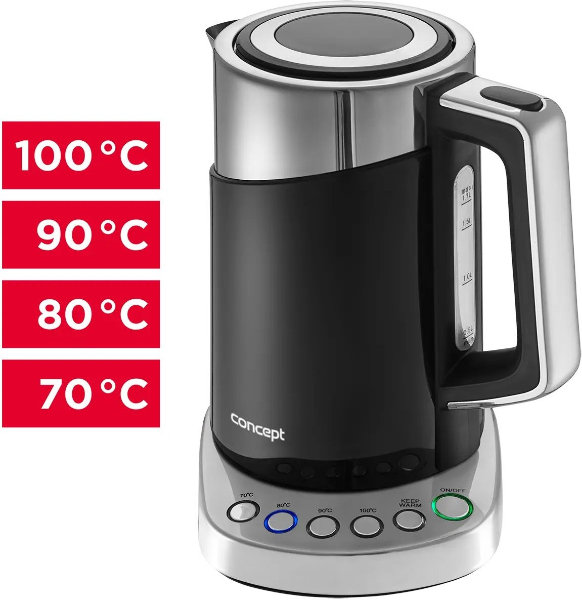 Concept RK3171, rýchlovarná kanvica s termoreguláciou, 1,7 l, čierna