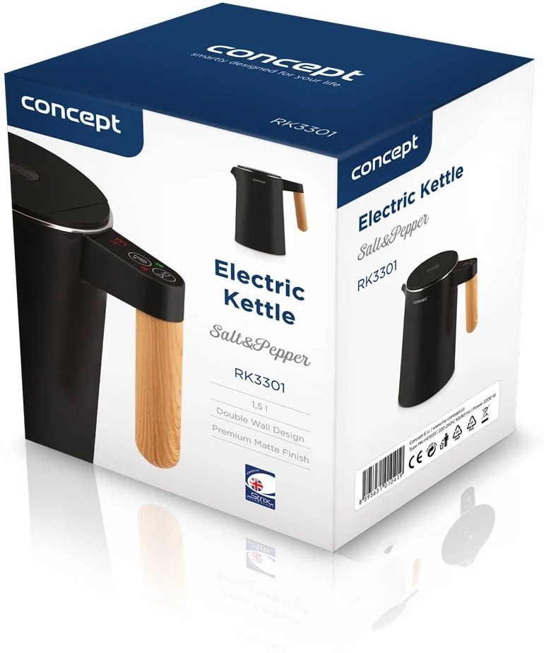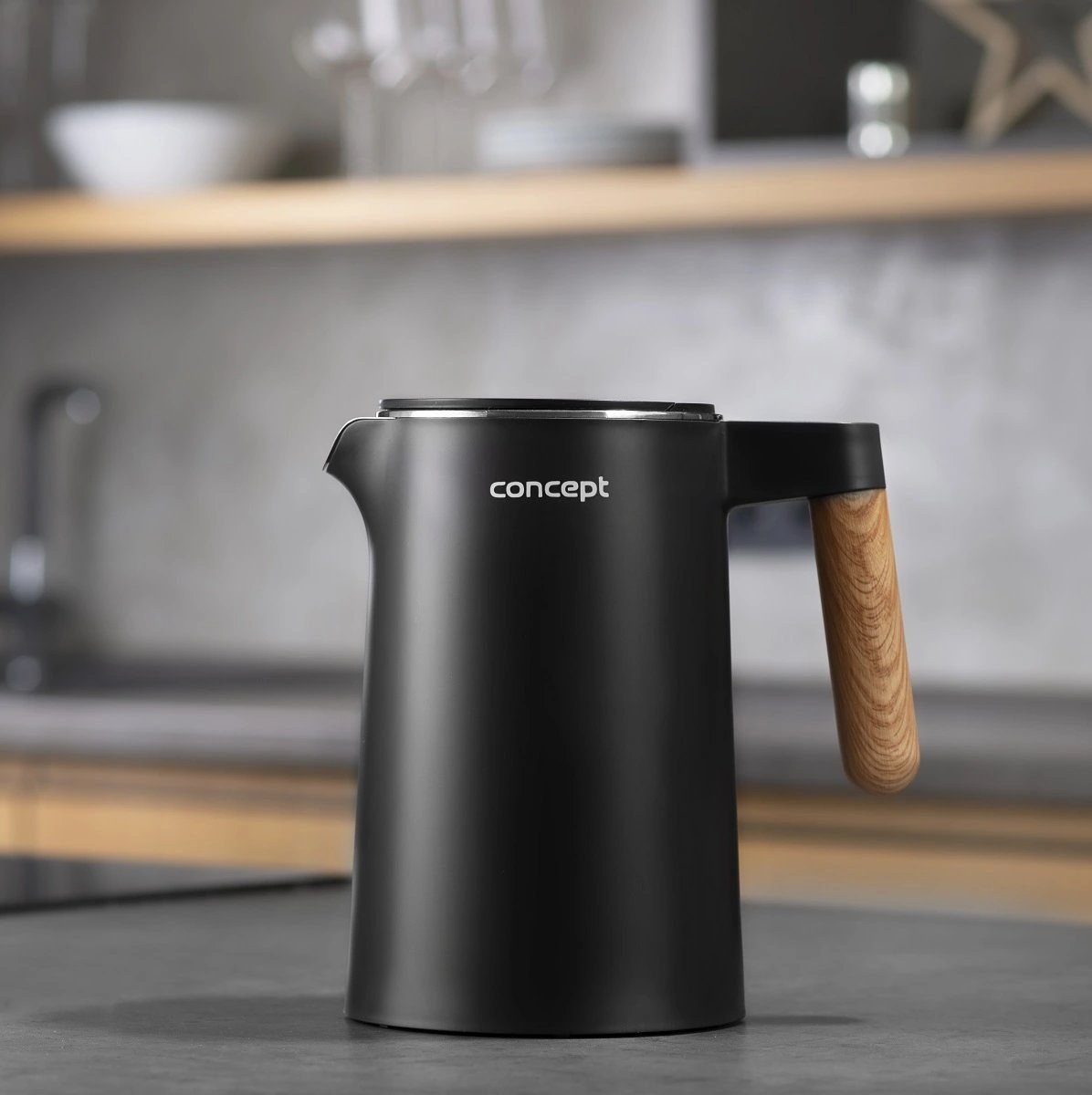 Rýchlovarná kanvica Concept RK3301 Salt & Pepper si nájde miesto v každej domácnosti. Jej atraktívny dizajn podtrhuj biele matené telo usadené na minimalistickom podstavci doplnené o elegantné madlo v dizajne dreva. S objemom 1,5 l s ňou pohodlne pripravíte až 6 šálok vášho obľúbeného horúceho nápoja.