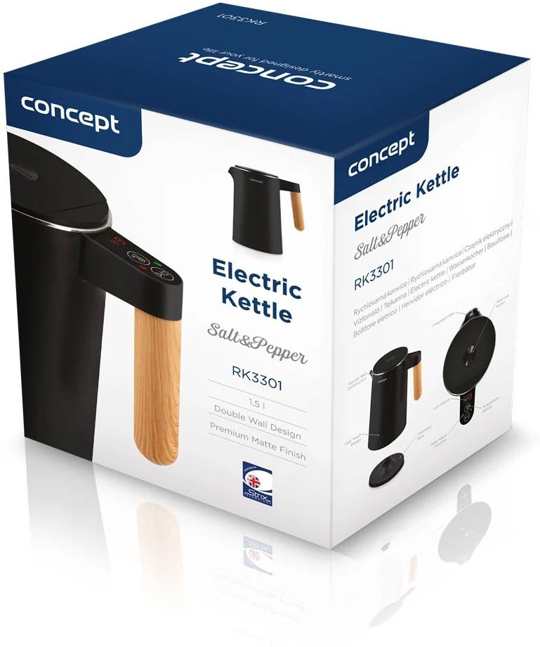 Concept RK3301 Salt & Pepper, rýchlovarná kanvica, 1,5 l, čierna