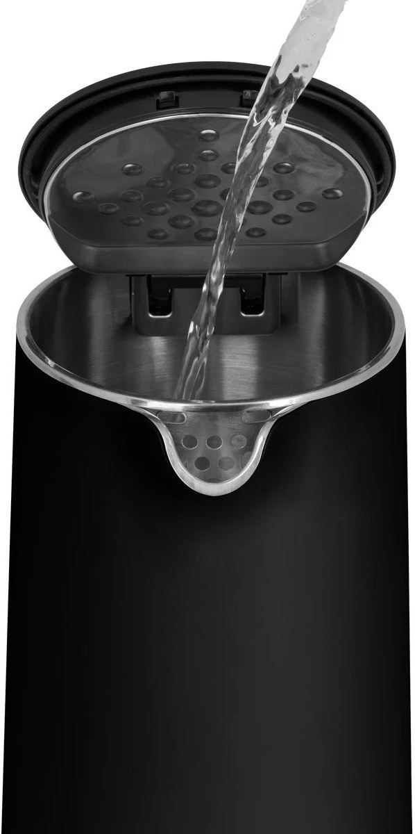 Kanvica je vybavená tlačidlom pre jednoduché otvorenie veka a veľkým plniacim otvorom pre pohodlné plnenie vodou. Hladké dno so skrytým vyhrievacím telesom zamedzuje usadzovaniu nečistôt. Praktický je aj plne otočný podstavec s priestorom pre uschovanie prebytočného kábla, na ktorý môžete kanvicu postaviť z akéhokoľvek uhla.