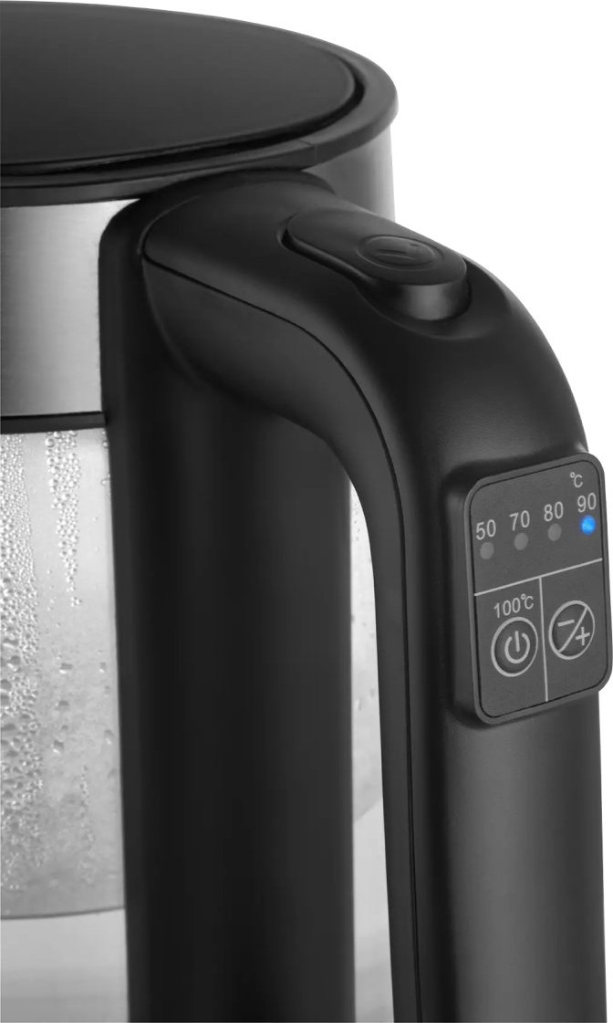 Kanvica je vybavená digitálnym ovládaním s možnosťou regulácie teploty od 50 °C do bodu varu. To iste ocenia nielen čajoví a kávoví nadšenci, ale tiež rodičia malých detí pri príprave detských príkrmov. Sklenený design kanvice príjemne dopĺňa farebné podsvietenie, ktoré sa mení v závislosti na zvolenej teplote. Nechýba ani praktická funkcia Keep Warm, ktorá udrží ohriatú vodu na požadovanej teplote.