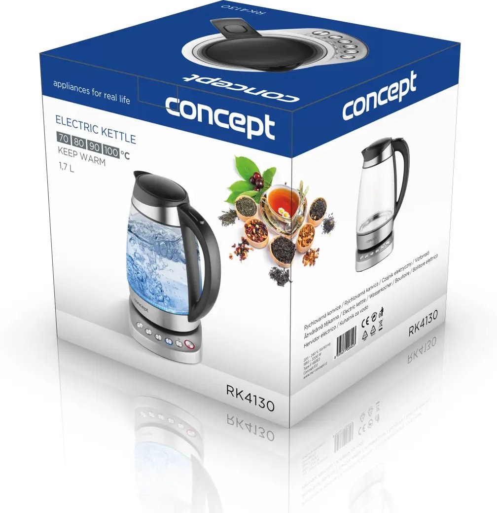 Concept RK4130, rýchlovarná kanvica sklenená s nastavením teplôt, 1,7 l