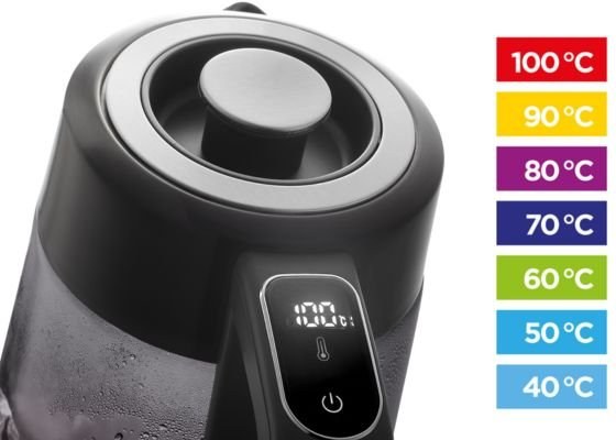 s možnosťou regulácie teploty od 40 ° C do bodu varu. To zaiste ocenia nielen čajoví a kávoví nadšenci, ale aj rodičia malých detí pri príprave detských príkrmov. Nechýba ani praktická funkcia Keep Warm
