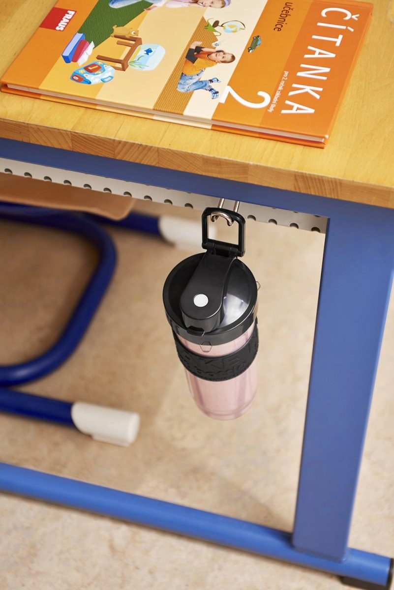 Fľaša je naviac vybavená praktickým sklopným pútkom. Pohodlne si ju Vaše dieťa môže zavesiť na školskú lavicu, či Vy v posilňovni na vešiak.