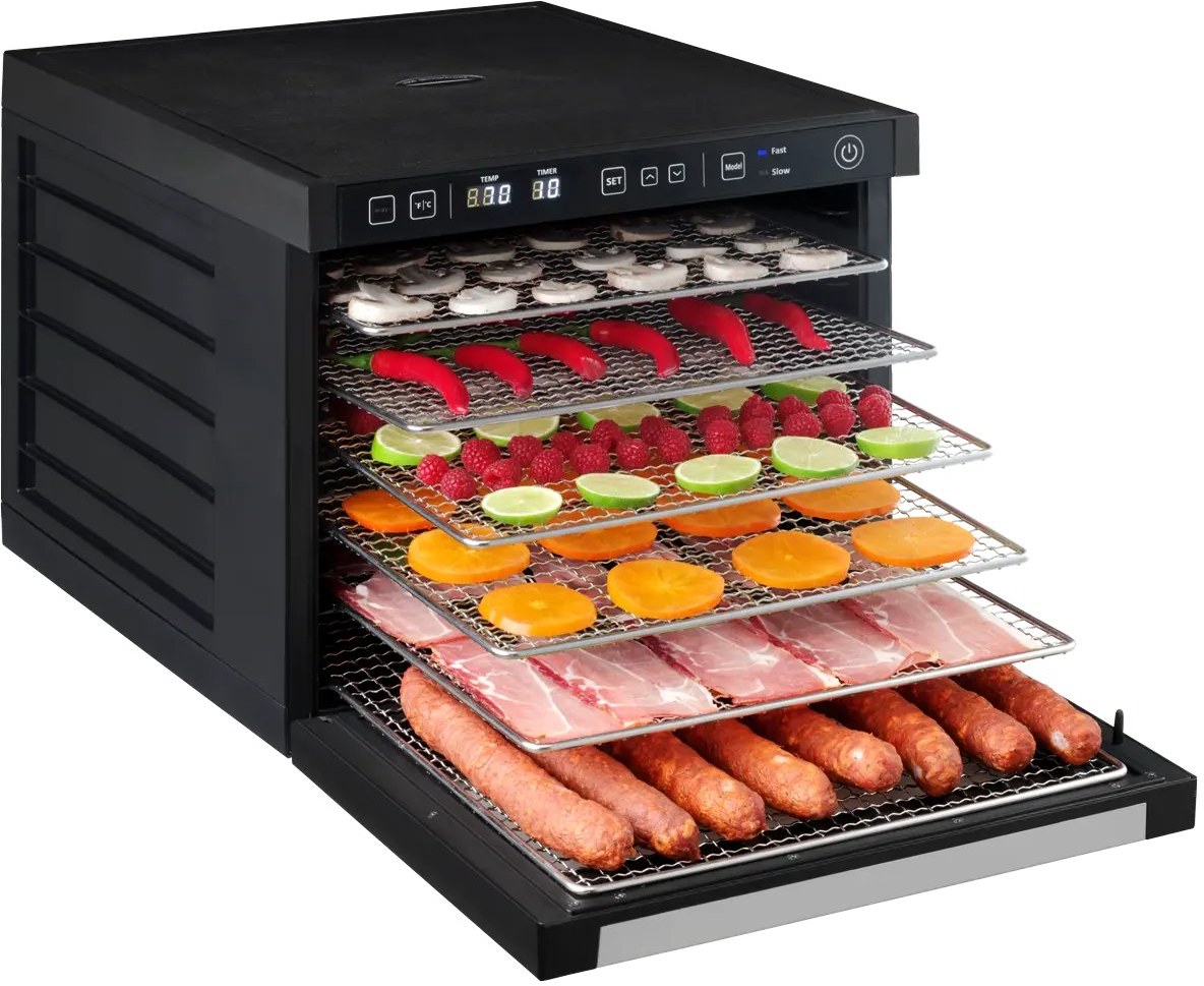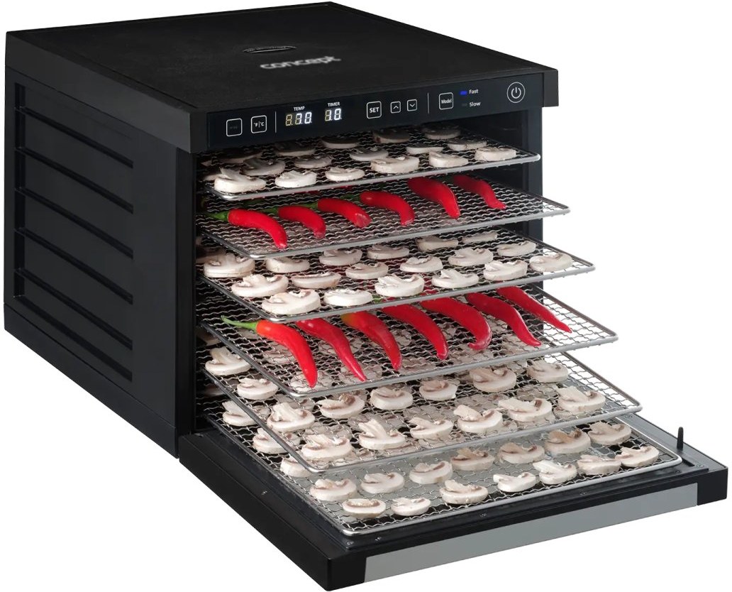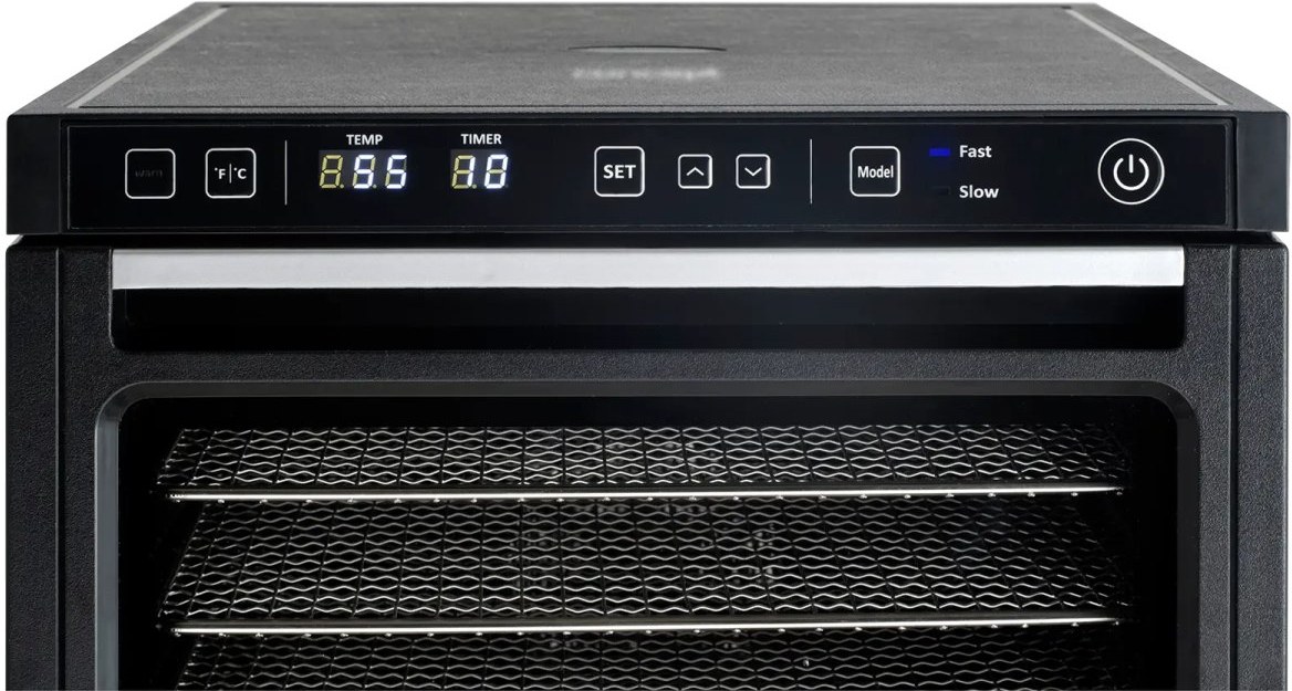 Na prehľadnom LED displeji si sami nastavíte ako dlho a na koľko stupňov chcete sušiť. Teplotu môžete pohodlne regulovať v rozmedzí od 35°C do 70°C. Digitálny časovač je možné nastaviť až na 99 hodín.