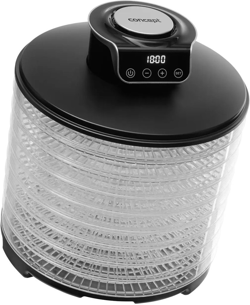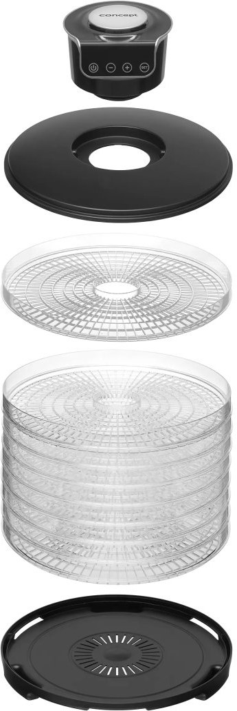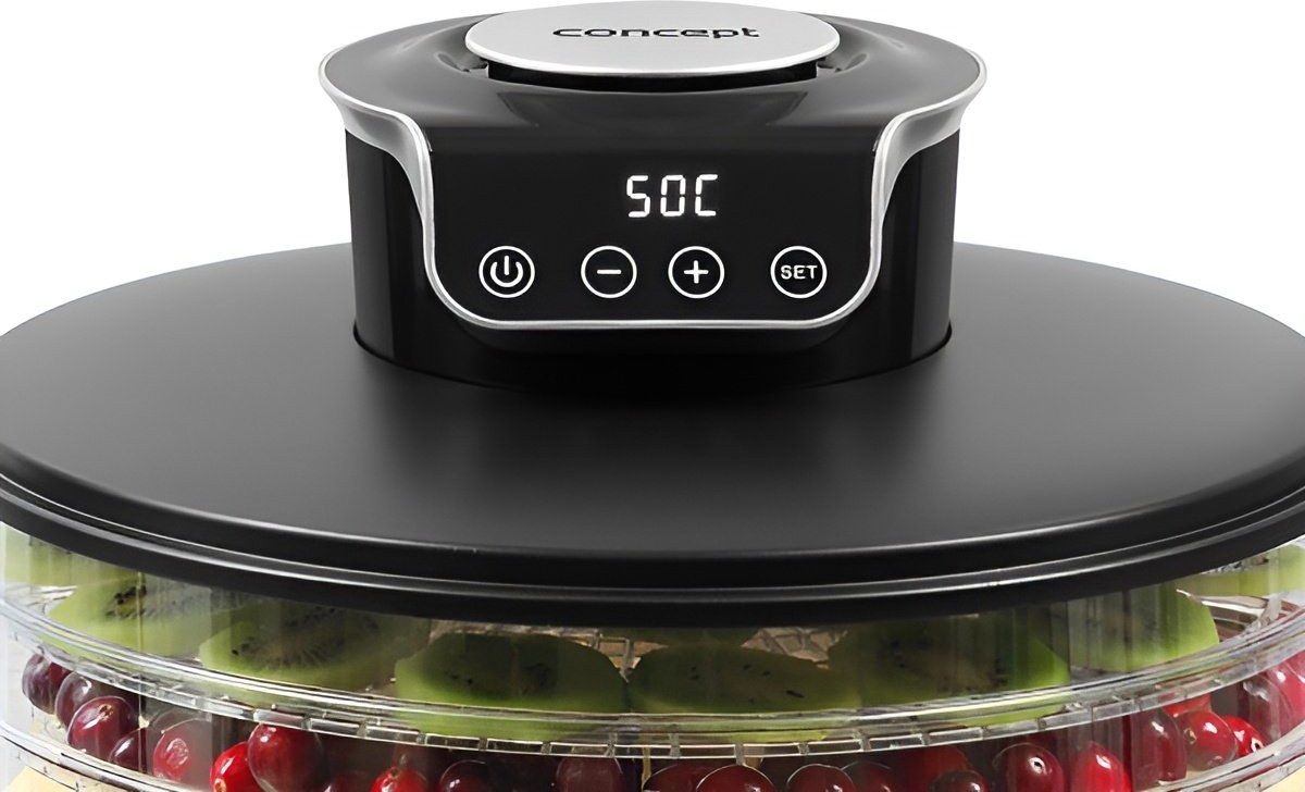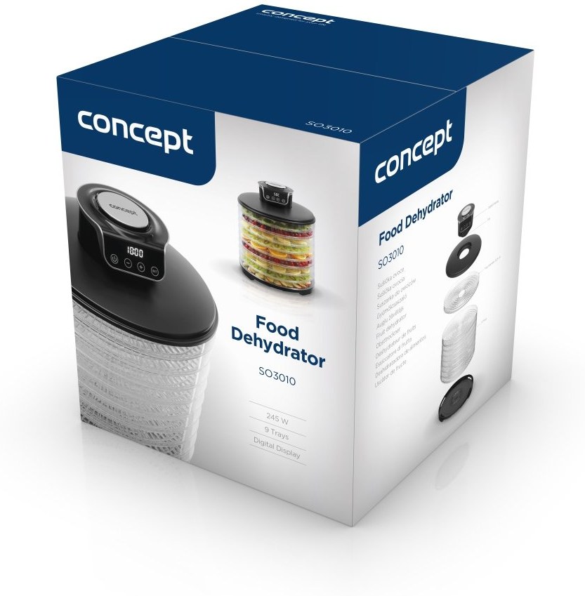 Sušička ovocia Concept SO3010 je vybavená 9 sušiacimi platmi a ponúka inovatívne konštrukčné riešenie. Motor sušičky je umiestnený vo veku, takže je počas sušenia chránený pred poškodením, ktoré by mohli spôsobiť odkvapkávajúce šťavy alebo omrvinky z usušených potravín.