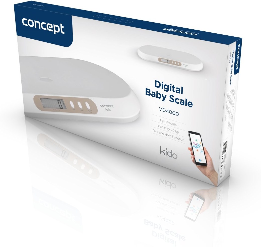 Detská váha s aplikáciou Concept VD4000 KIDO vám umožní postrážiť hmotnosť vášho bábätka v pohodlí domova. Kedykoľvek si tak môžete skontrolovať, či vaše dieťa správne priberá a uistiť sa o dostatočnej výživnosti materského mlieka. Ponúka veľmi presné váženie s nosnosťou 20 kg, takže ju využijete nielen pre novorodencov, ale aj pre väčšie deti. Nameranú hmotnosť môžete sledovať na prehľadnom digitálnom displeji.