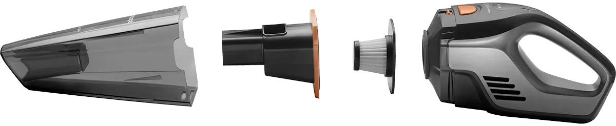 ručný vysávač, farba čierna, objem 0,5 l, hlučnosť 70 dB, napájanie z batérie, suché aj mokré vysávanie, HEPA filterZobraziť viac