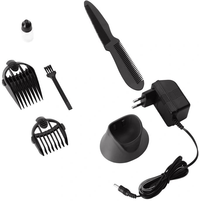 Spoločne s prístrojom nájdete v balení tiež nabíjací stojan, olej na premazanie, hrebeň a praktický štetec pre jednoduchú údržbu strojčeka.