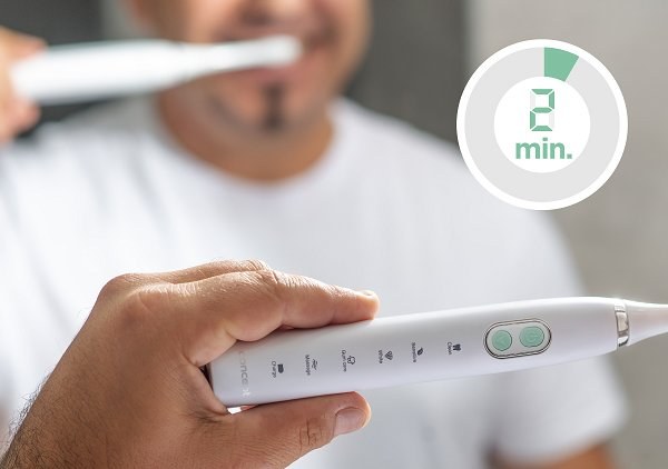 Kefka na zuby ZK4010 je vybavená inteligentným časovačom, ktorý vám postráži dĺžku čistenia. Je nastavený na 2 minúty, ktoré pre čistenie zubov odporúčajú zubní lekári. Časovač je rozdelený na 4 časové intervaly po 30 sekundách, aby ste mali presnú kontrolu nad dĺžkou čistenia v jednotlivých častiach úst.