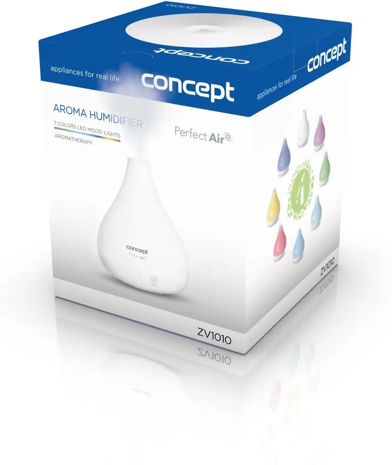 ZV1010 od Conceptu je ultrazvukový zvlhčovač, ktorý vytvára takzvanú studenú paru. Jeho hlavnou prednosťou je, ako aj u ostatných ultrazvukových zvlhčovačov, nízka spotreba elektrickej energie. V tomto prípade to je 12 W a aj napriek tomu je veľmi efektívny.