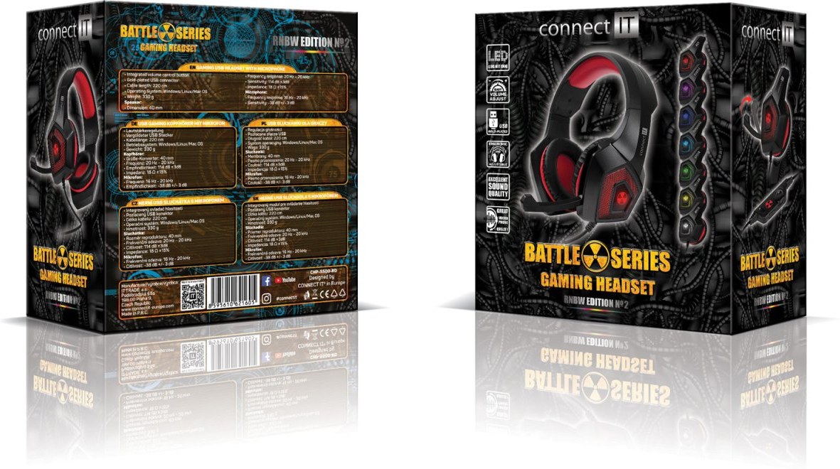 Connect IT Battle RNBW Series Edition 2, herné slúchadlá s mikrofónom, červené