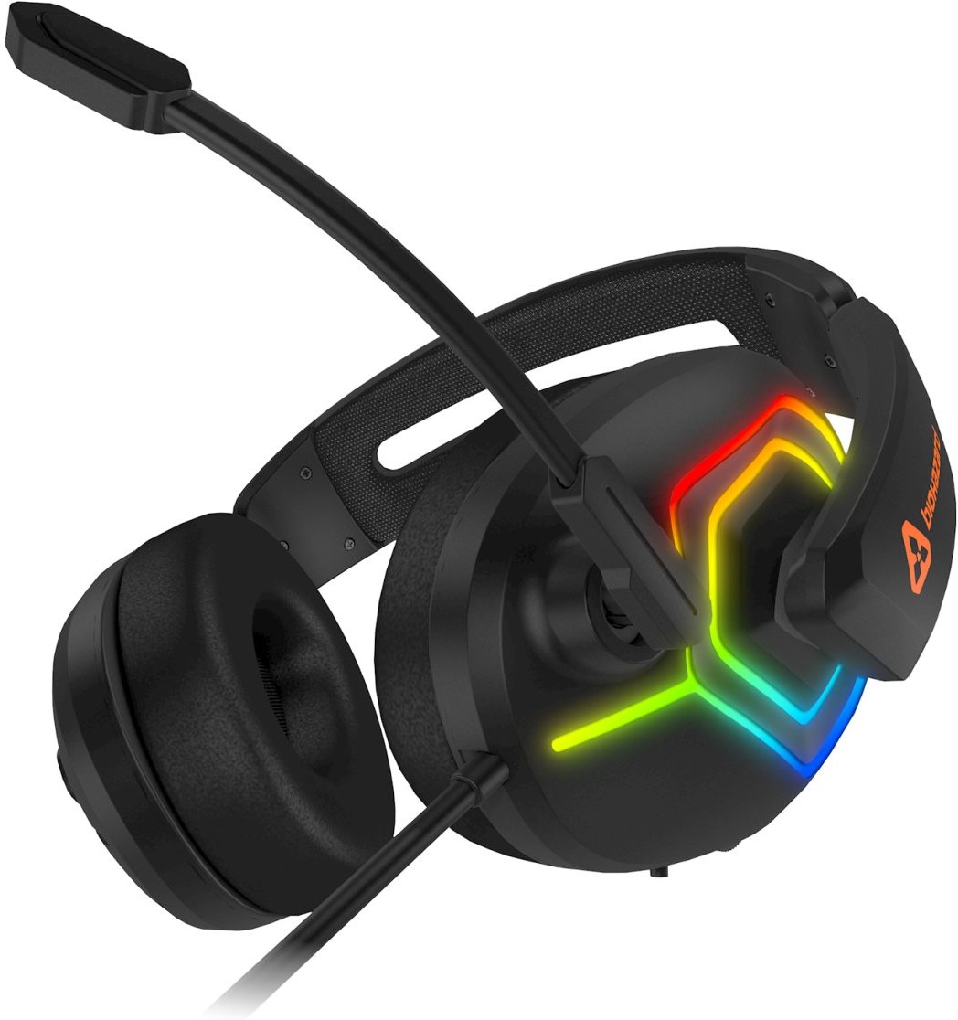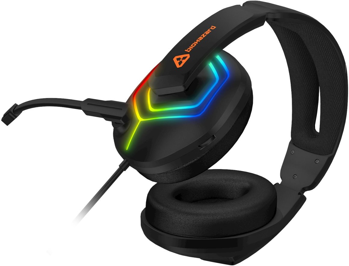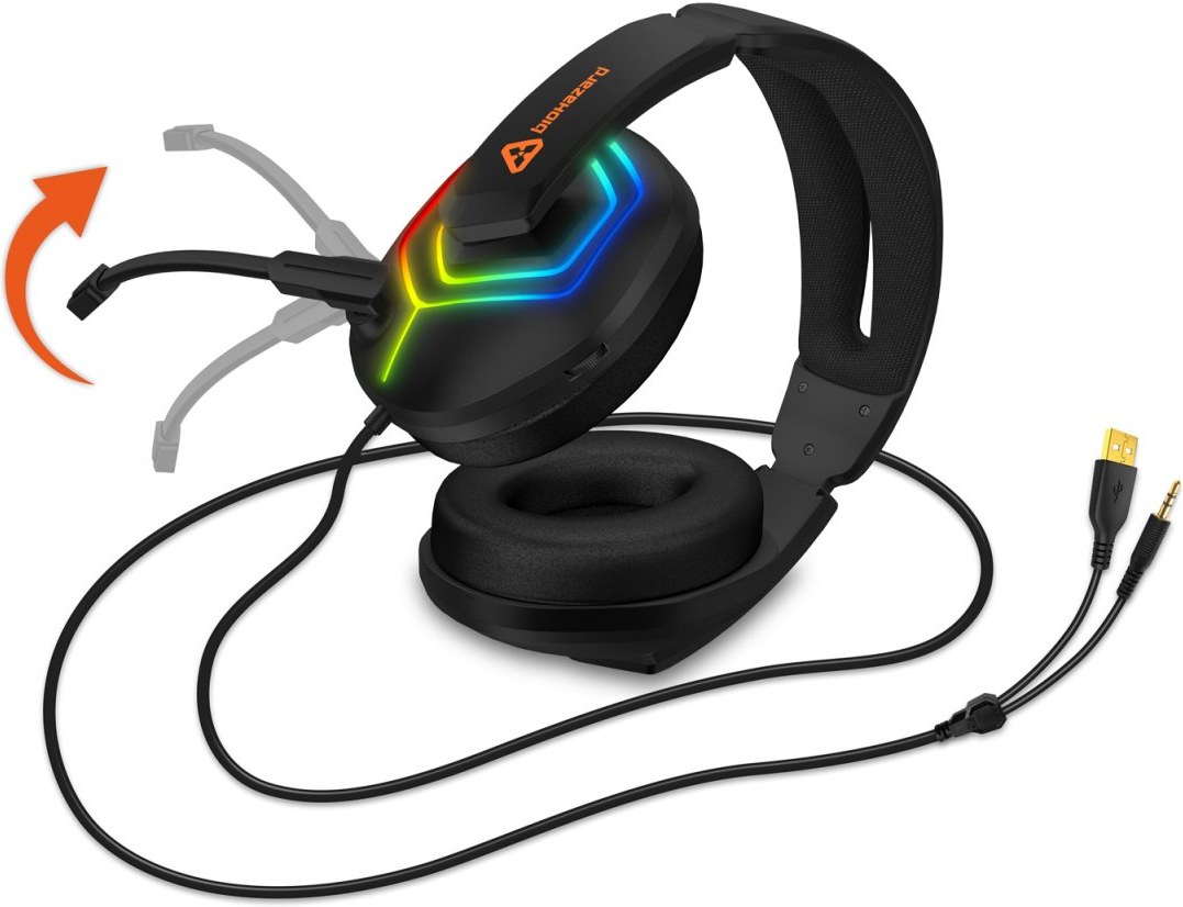 Profesionálne gamingové slúchadlá so sklápacím mikrofónom BIOHAZARD s podsvietením pre hráčov počítačových hier.Slúchadlá sú vybavené RGB Rainbow podsvietením, ovládaním hlasitosti, sklápacím mikrofónom a obľúbenými pozlátenými konektormi. V balení nájdete aj 3.5 mm jack adaptér pre maximálnu kompatibilitu.