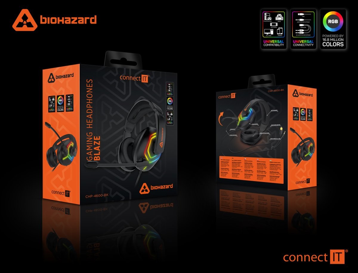 Connect IT Biohazard Blaze, herné slúchadlá s mikrofónom, čierne