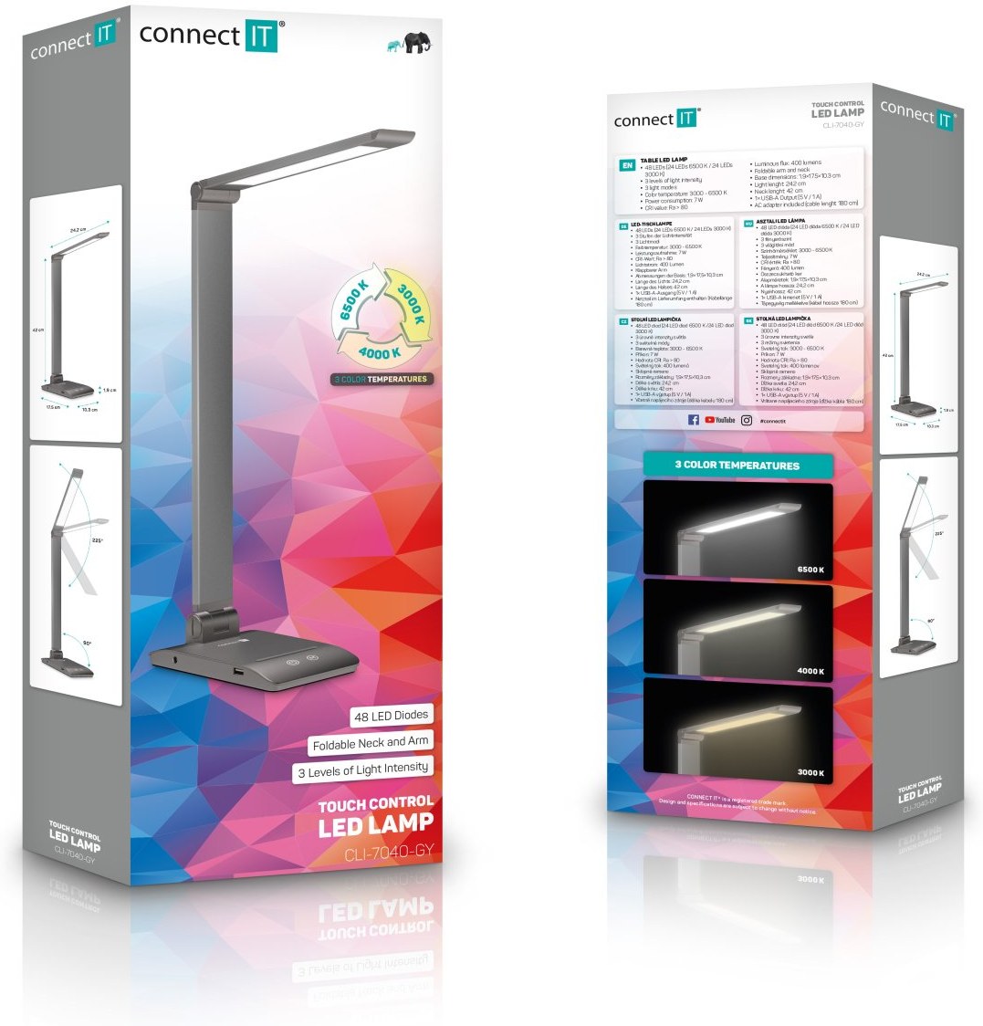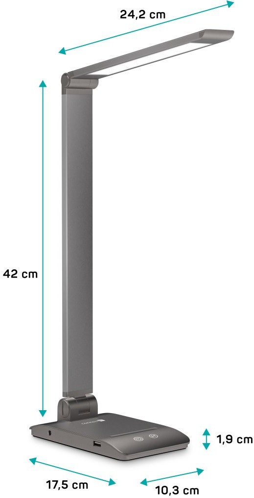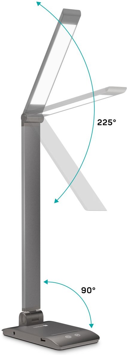 Stolná LED lampička "BRIGHT" v elegantnom prevedení je ideálny pomocník vhodný nielen na pracovný stôl do kancelárie, domácej pracovne alebo detskej izby, ale aj na nočné stolíky.Vďaka sklopnému ramenu a krku nastavíte dokonalý uhol pre akúkoľvek prácu. Lampička disponuje USB-A výstupom s výkonom 5 W a dvoma praktickými dotykovými spínačmi, ktoré umožňujú zapnúť/vypnúť lampu, nastaviť 3 úrovne jasu svetla alebo nastaviť farebnú teplotu svetla v 3 rôznych úrovniach (3000/4000/6500 K).