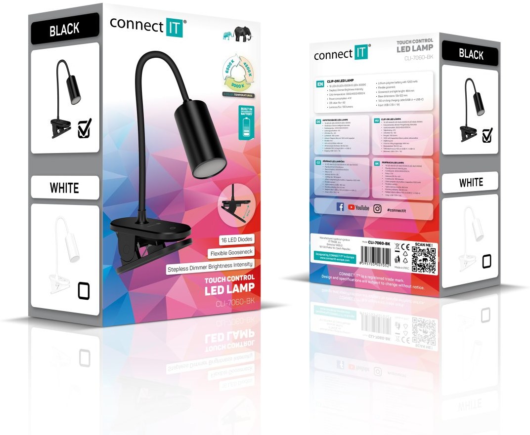 Connect IT Clip 2, stolná LED lampa s klipom, čierna