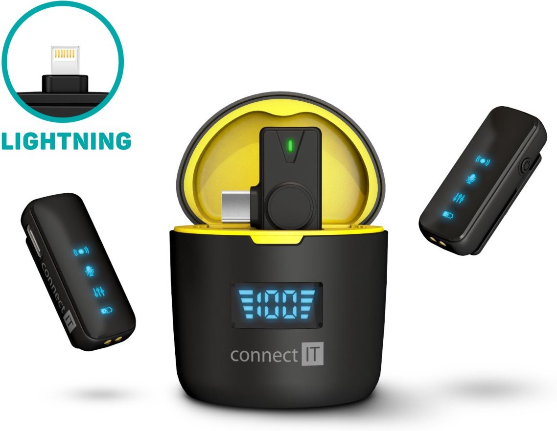 Connect IT ClipMic Pro, bezdrôtový mikrofón, Lightning, 2 ks + receiver, čierny