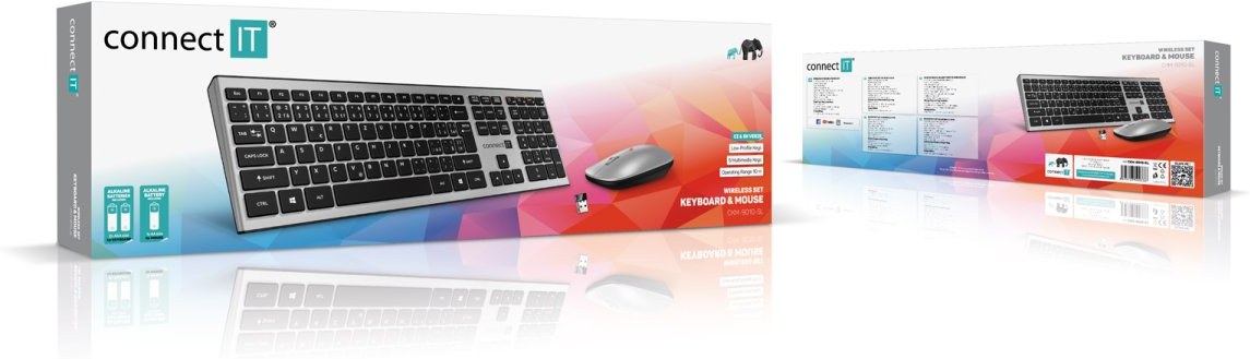 Connect IT Combo, bezdrôtová klávesnica + myš, CZ/SK, strieborná