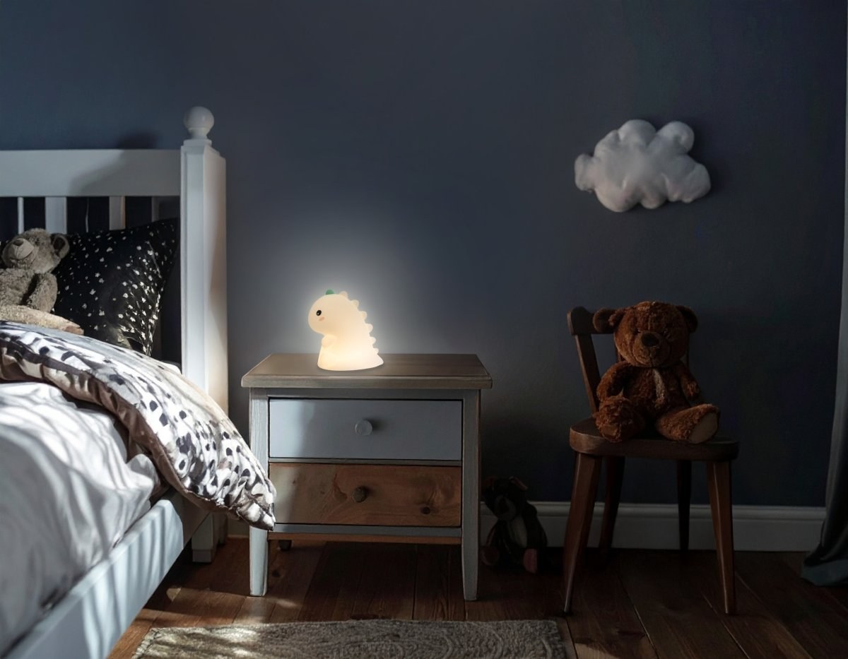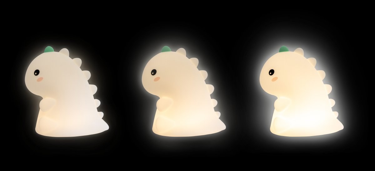 Nočné LED svetlo v tvare dinosaura je ideálny pomocník vhodný na osvetlenie detských izbičiek. Svetlo poskytuje príjemné teplé biele svetlo, ktoré vás v noci neoslní.Svetlo je možné ovládať pomocou "touch" funkcie, ktorá umožňuje zapnúť/vypnúť svetlo a nastaviť jas svetla v 3 úrovniach. Disponuje zabudovanou batériou s kapacitou 1200 mAh, vďaka ktorej môže svetlo svietiť na jedno nabitie až 8 hodín.