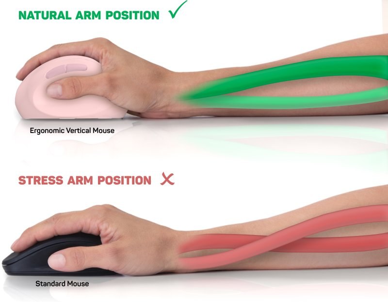 Vertikálna ergonomická optická bezdrôtová myš určená špeciálne ako prevencia proti syndrómu karpálneho tunela.Pri práci s bežnou počítačovou myšou sú kosti predlaktia v neprirodzene skríženej polohe a už po krátkom čase dochádza k bolestiam a únave celého predlaktia. Pri dlhodobom používaní takejto myši môže dôjsť k chronickým problémom s nutnosťou vyhľadať lekársku pomoc.