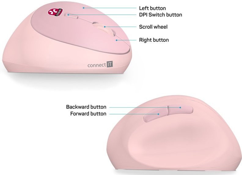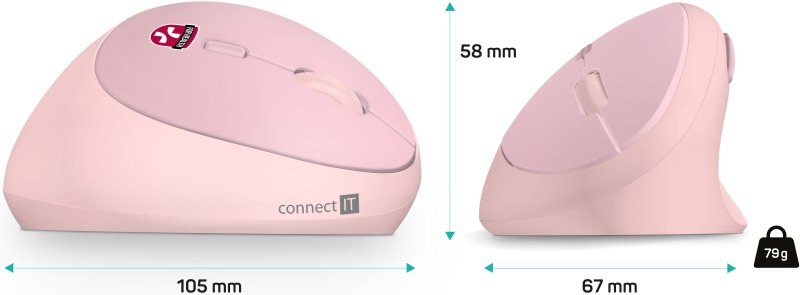 Connect IT For Health Ladies, ergonomická bezdrôtová vertikálna myš, ružová