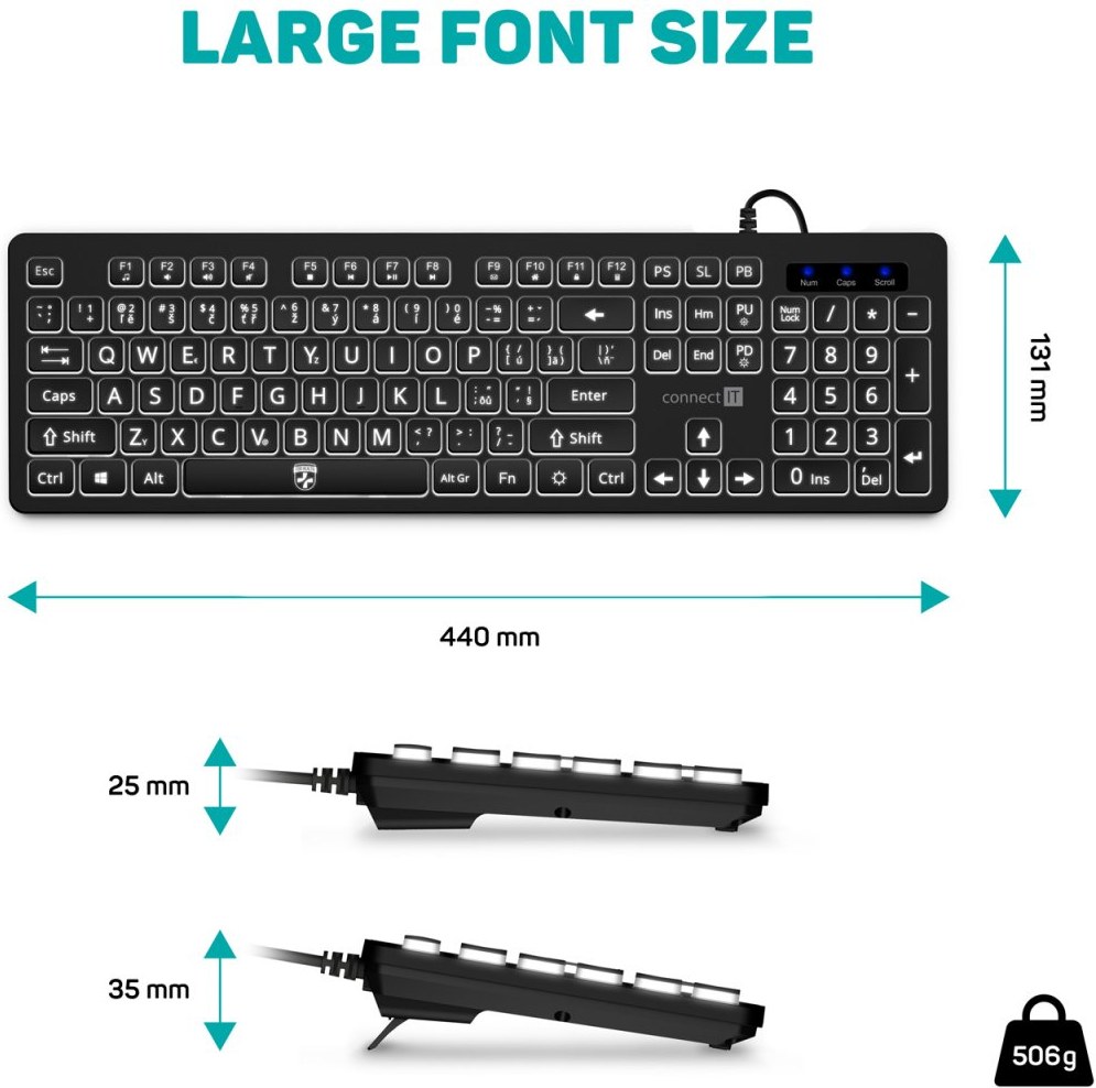Connect IT For Health LargeFont, klávesnica s veľkým fontom, CZ/SK, čierna