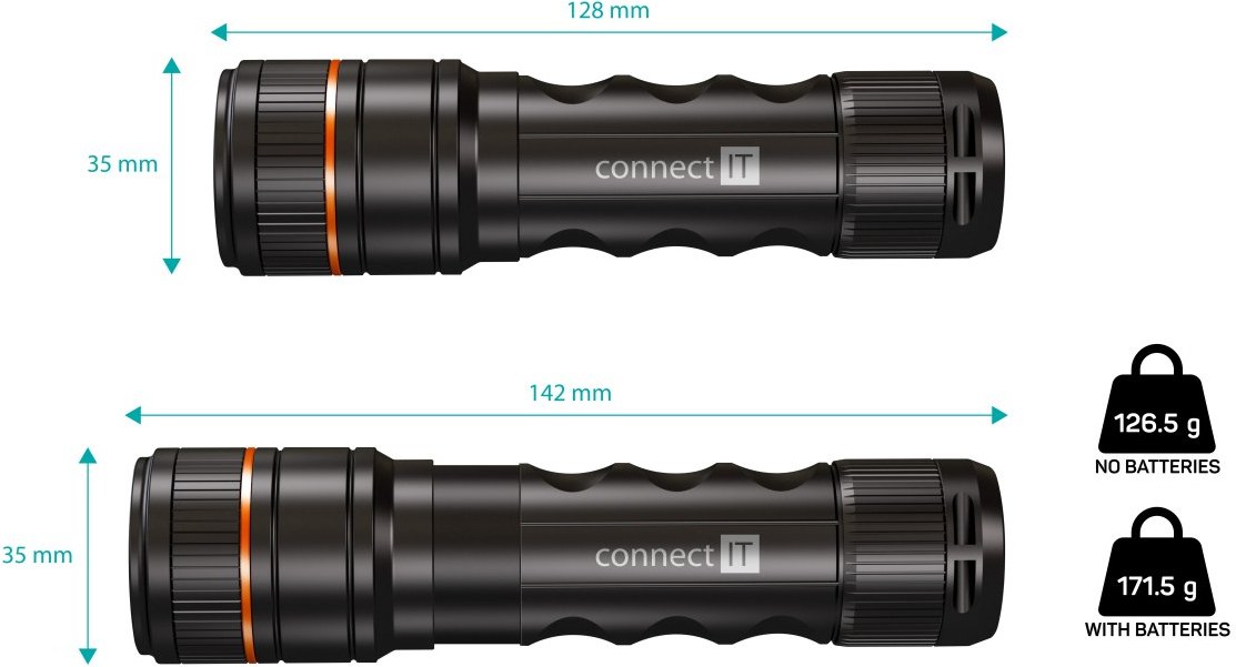 Connect IT Gleam 500 LED, ručné svietidlo, čierne