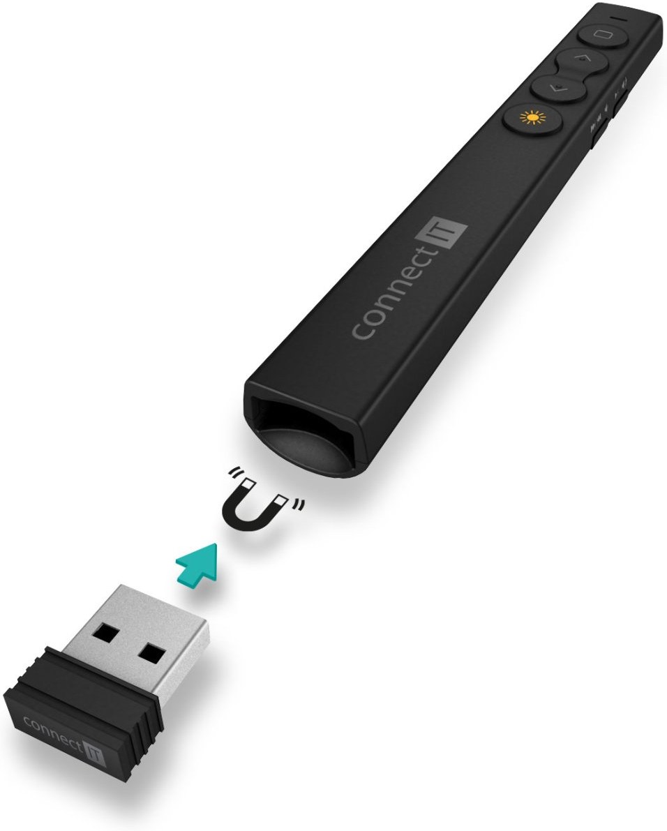 Úložný priestor v spodnej časti prezentéra pre mini USB prijímač ideálny pri transporte aj cestovaní