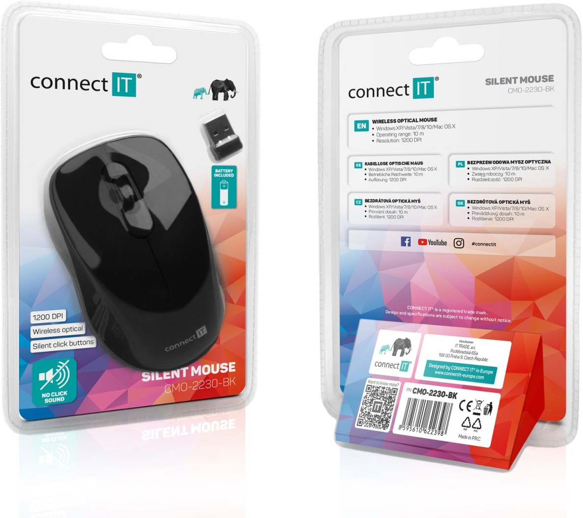 Bezdrôtová optická myš CONNECT IT "Mute" s tichým chodom tlačidiel, ktoré pri klikaní nevydávajú žiadny zvuk nájde svoje uplatnenie všade tam, kde používateľ vyžaduje absolútne súkromie a pokoj. Myš neruší používateľa ani svoje okolie nepríjemným hlasným klikaním známym z bežných modelov počítačových myší.Technické parametre