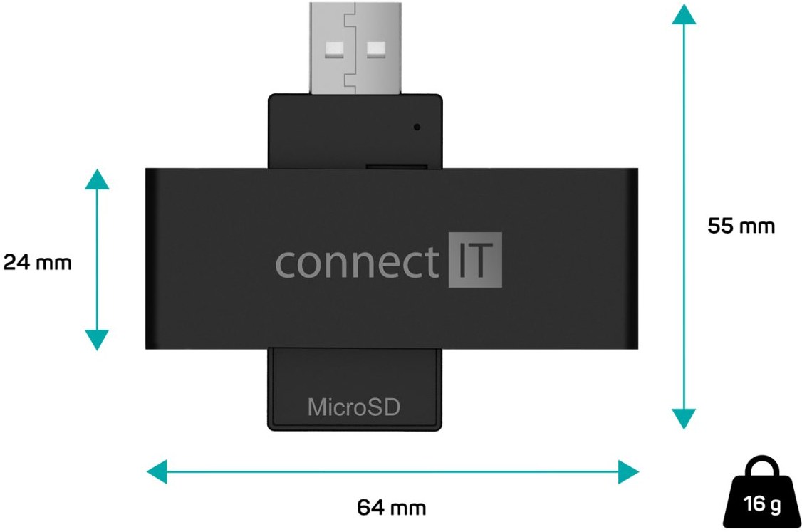 Externá čítačka eObčianok a čipových kariet s rozhraním USB-A, slotom pre Micro SD pamäťové karty a praktickým vyklápacím dizajnom.Praktická externá čítačka eObčianskych preukazov Vám umožní pripojiť sa k účtom štátnej správy nech ste kdekoľvek. Je kompatibilný s bankovými čipovými kartami a väčšinou smart kariet a nechýba ani slot pre microSD pamäťové karty. Používa spätne kompatibilné rozhranie USB 2.0, vďaka ktorému je zaistený bezproblémový a rýchly prenos dát medzi zariadeniami. Čítačka má tvar flashdisku, takže ju možno ľahko prepravovať a vziať si ju napríklad aj na cesty. Štíhle telo čítačky nebráni vo využití vedľajších USB portov počítača, matný povrch čítačky obmedzuje tvorbu odtlačkov prstov. Podporuje eObčianky s čipom, bankové čipové karty a microSD pamäťové karty.
