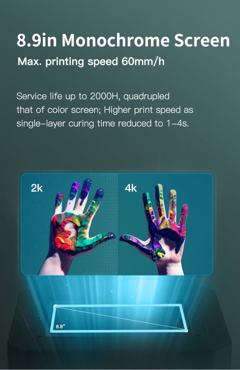 Produkt LD-006 od značky Creality zaujme 8,9-palcovým 4K monochromatickým displejom a zväčšeným inštalačným priestorom s rozmermi 192 x 120 x 250 mm.4K Solid State displej