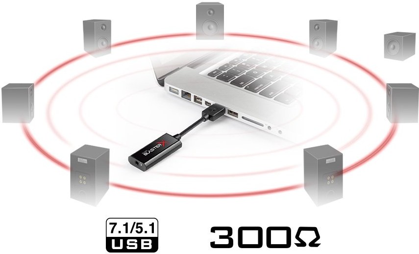 Moderné prenosné zariadenie Sound BlasterX G1 s technológiou Plug-and-Play prináša krištáľovo čistý zvuk o vysokom rozlíšení s 7.1 HD pozičným priestorovým zvukom. Ponúka okamžité posilnenie zvukového výkonu pre intenzívny herný zážitok pre stolný počítač, Mac či PS4. Súčasťou balenia je redukcia z combo jacku na dva samostatné výstupy pre slúchadlá a mikrofón.