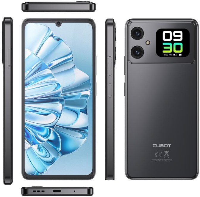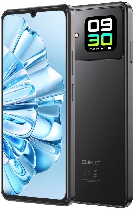 Cubot A20 zaujme na prvý pohľad. Elegantné telo skladajúce sa zo skla a plastu je dostupné v troch farbách – klasická čierna a modrá – takže si každý nájde to svoje. Okrem veľkého 6,75” IPS HD+ displeja s 90Hz obnovovacou frekvenciou má telefón aj menší 1,83” dotykový displej na zadnej strane, ktorý ukazuje upozornenie, umožňuje ovládať hudbu alebo rýchlo skontrolovať čas a stav batérie.
